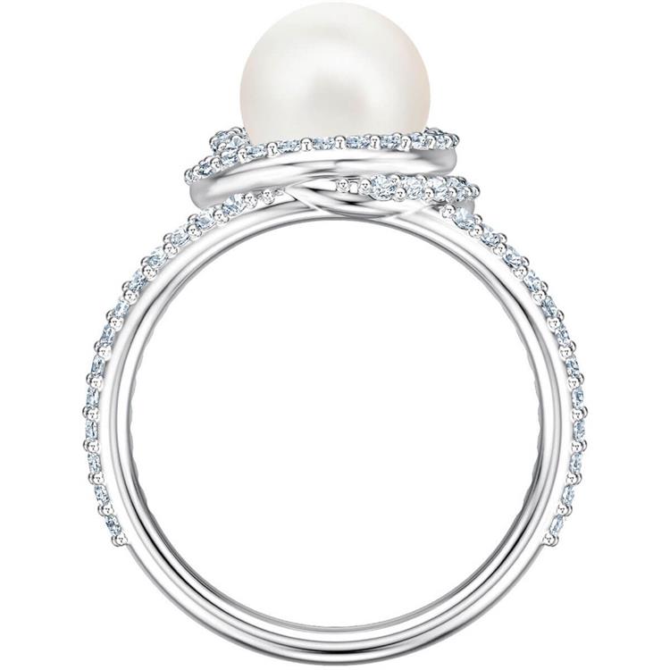 Un pavè scintillante montato su metallo rodiato decora la brillante Swarovski Crystal Pearl, esempio di un'eleganza senza tempo.