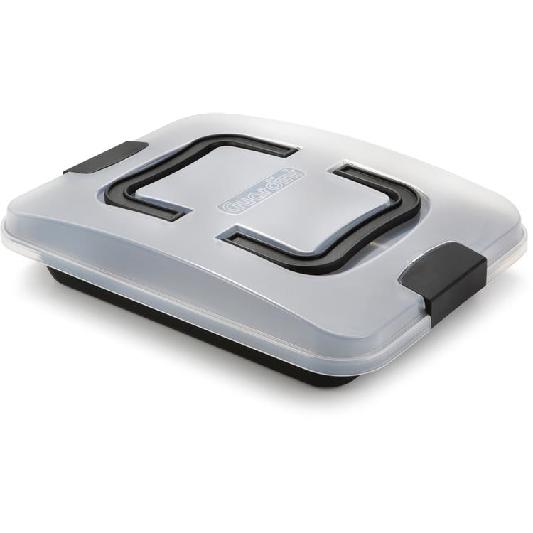 La lasagnera Bake Away è stata studiato proprio per il Take Away, infatti con il suo speciale coperchio in plastica che la richiude fornito di pratiche maniglie, ti permette di trasportarla ovunque con all'interno la tua creazione culinaria. Il coperchio non è per l'uso nel forno.