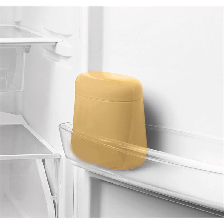 Ecco qui che Guzzini crea l'apposito barattolo salva freschezza, che e perfettamente conforme alla porta del frigo, ed ha inoltre il tappo a chiusura ermetica.
