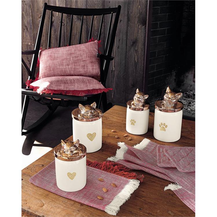 Le collezioni Romeo e Birba di Andrea Fontebasso presentano 4 graziosi barattoli con un gattino od un cagnolino raffigurati sul coperchio.