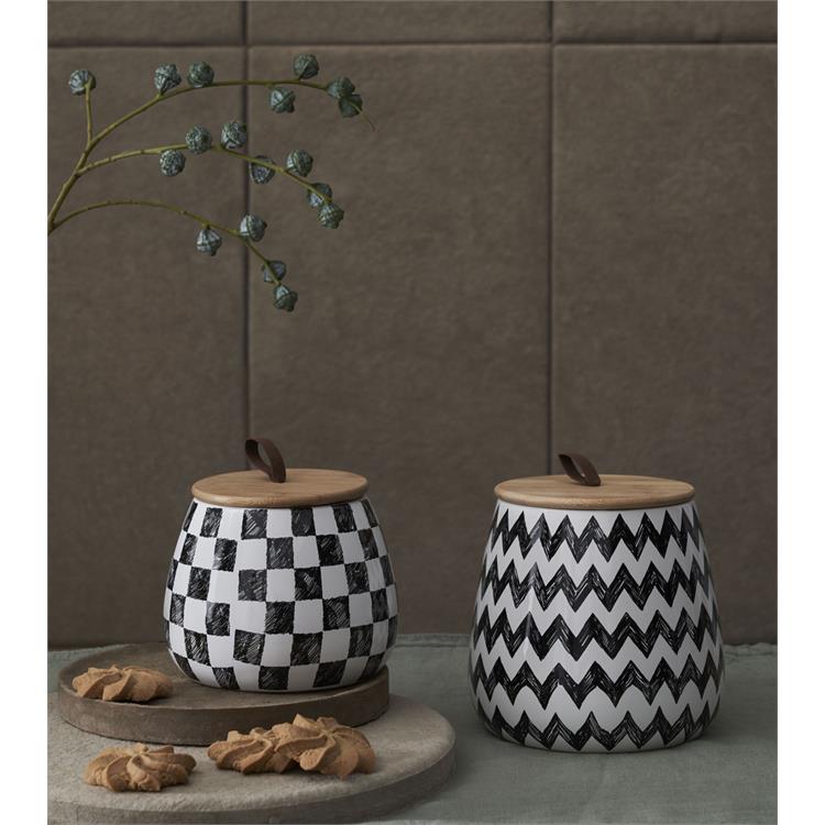 La caratteristica principale è il suo motivo alternante di bianco e nero ed il coperchio in bambù.