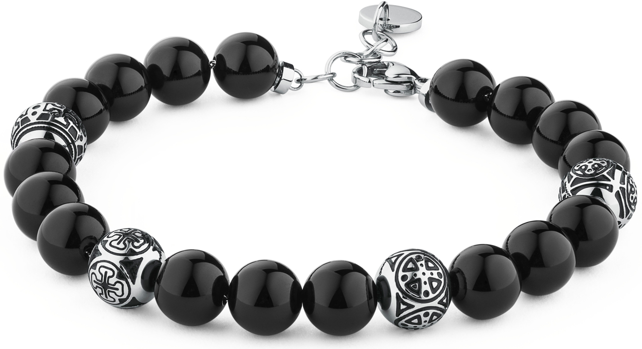 Con beads rotonde in acciaio, smalto nero e palline di onice nera