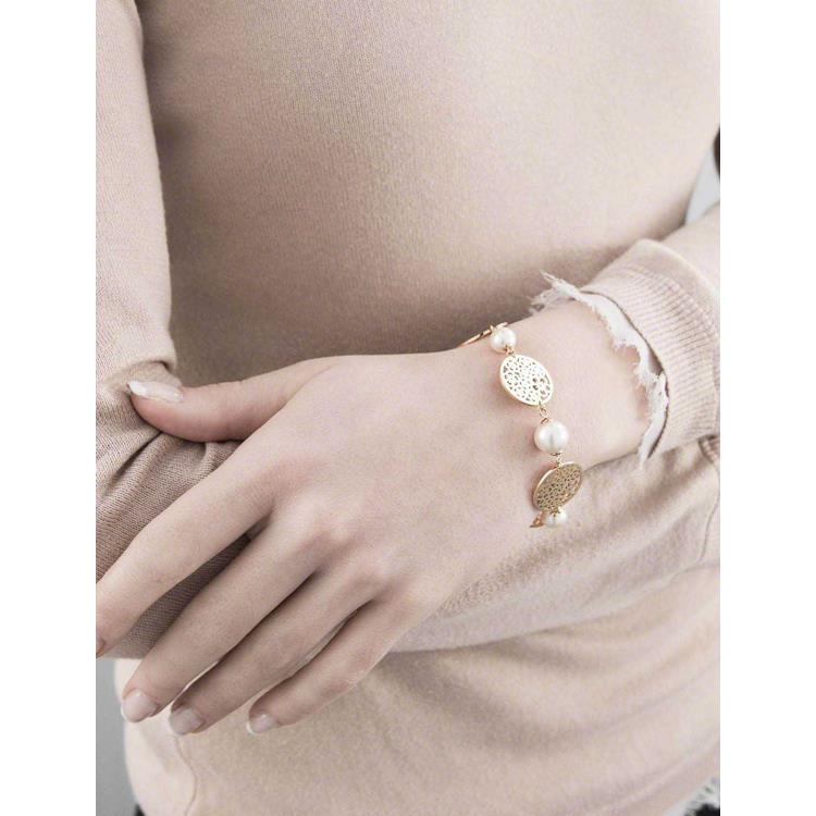 Bracciale in acciaio 316L, pvd oro e perle Swarovski.