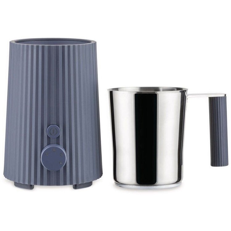 Cappuccinatore Plissè avvolge con morbide pieghe lo scintillante corpo in acciaio inox del contenitore, creando doppio contrasto tra i materiali colorati e le linee morbide e il design essenziale e la finitura a specchio del bricco.