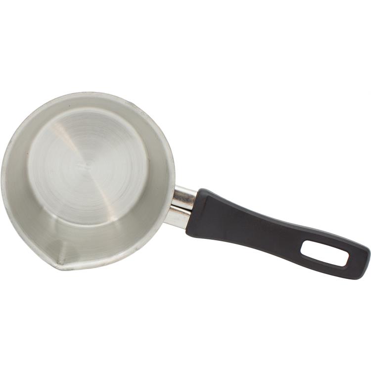 Mini casseruola in acciaio inox con manico lungo, di forma conica dotata di un beccuccio laterale comodo per versare. Adatta per cuore e scaldare. Manico lungo in bachelite, antiscottatura per una presa più sicura