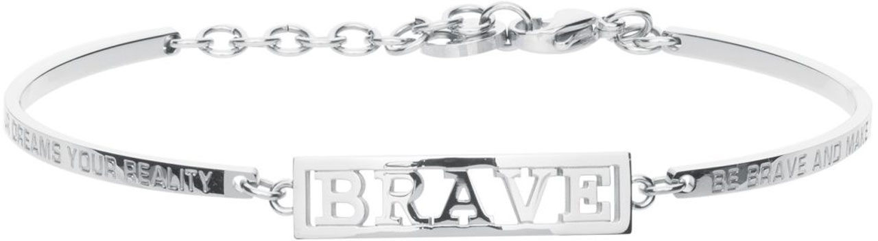 Bracciale in acciaio 316L con scritta centrale brave e incisioni.