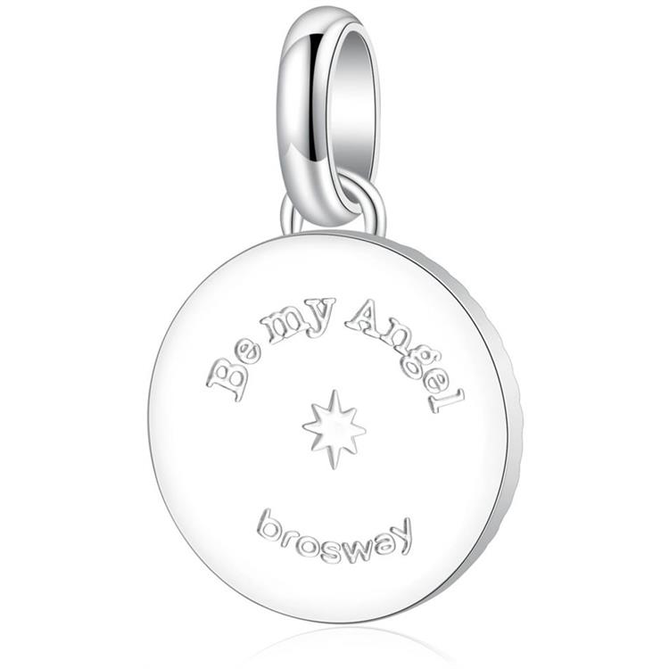 Charm in acciaio 316 L con incisione "Angel" sul fronte e sul retro "Be my Angel".