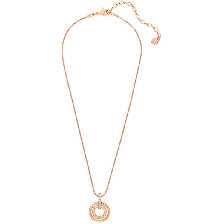 Eleganza e versatilità. Ciondolo che riprende il simbolo dell'infinito.La lucentezza del cerchio esterno con placcatura in oro rosa fa da cornice alla brillantezza di quello interno, realizzato in pavè di cristallo Clear Crystal. Abbinato ad una catenina placcata oro rosa, questa creazione aggiunge uno stile retrò anche al vostro abbigliamento!