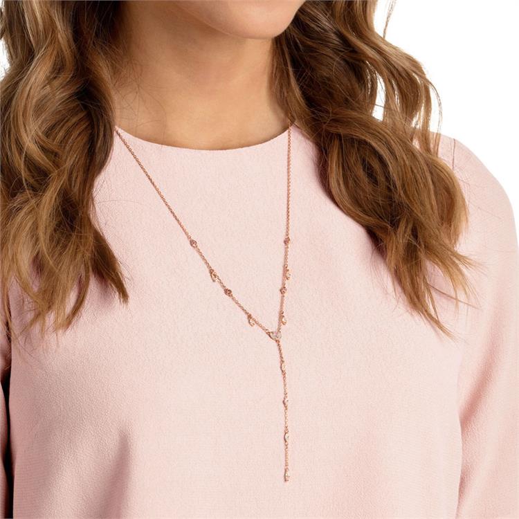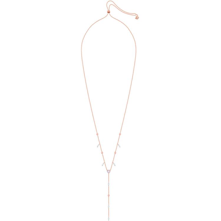 La catenina è punteggiata da straordinari cristalli, mentre l'elemento centrale è una pietra a forma di cuore in una femminile tonalità rosa pastello. Un regalo elegante e romantico, con una chiusura regolabile per la perfetta vestibilità.