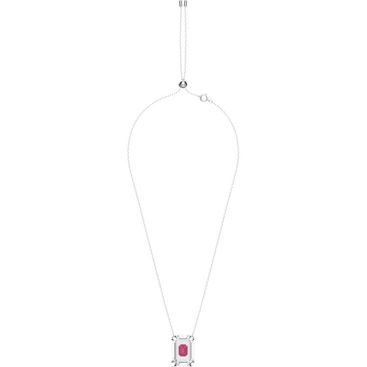 Il suo design sovversivo presenta due cristalli sovrapposti dal taglio Octagon appesi ad una collana sottile placcata rodio.