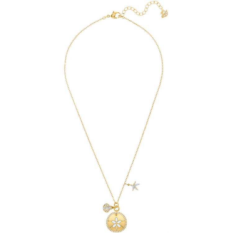 Replica l'atmosfera delle vacanze con questa collana estiva. Ispirata al mondo sotto marino, il design placcato oro presenta un motivo con moneta, stella marina e conchiglia.