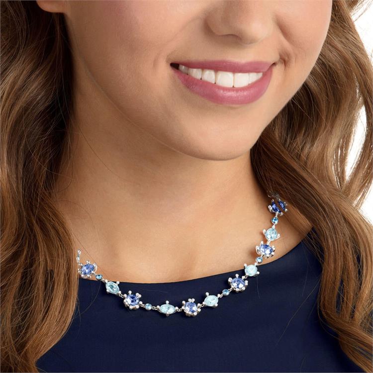 Ispirata ai colori del mare, i cristalli blu sono esaltati dall'incastonatura a griffe.