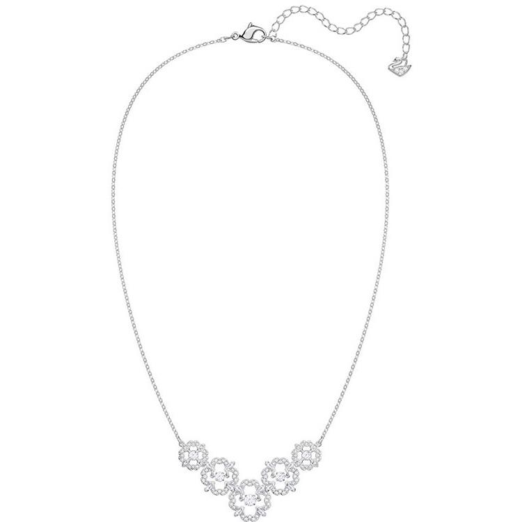 Con questa collana Swarovski utilizza un innovativo concetto "dancing crystal" con una scintillante pietra che fluttua all'interno di un motivo floreale in pavè. Con la sua placcatura rodio, cattura alla perfezione la luce e l'attenzione. E' una vera e propria scintilla!
