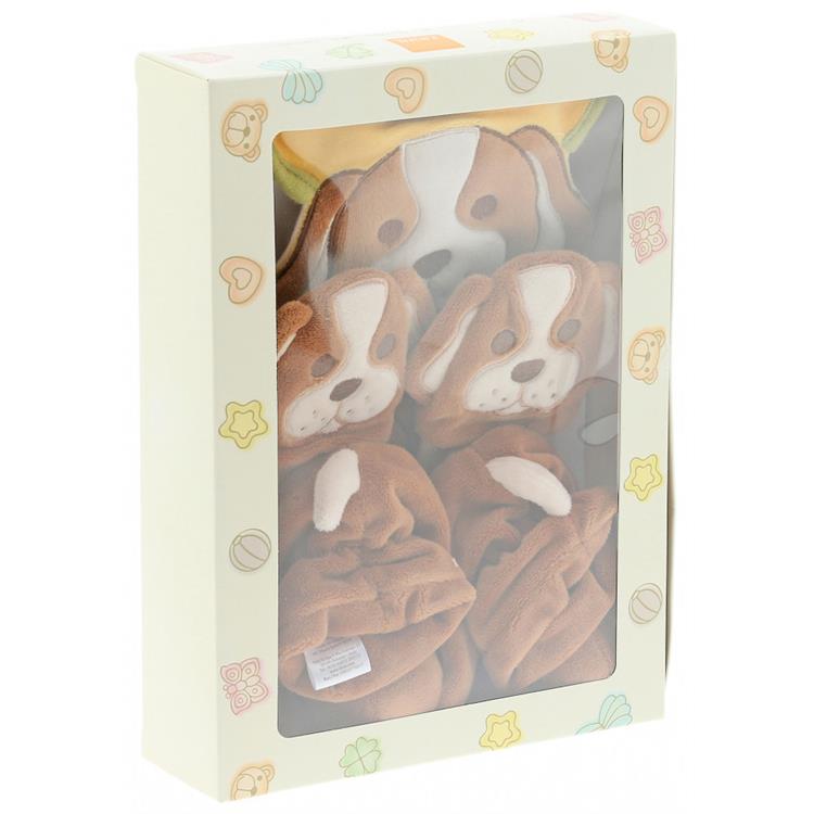 Confezione babbucce, moffole e bavaglino Cagnolino