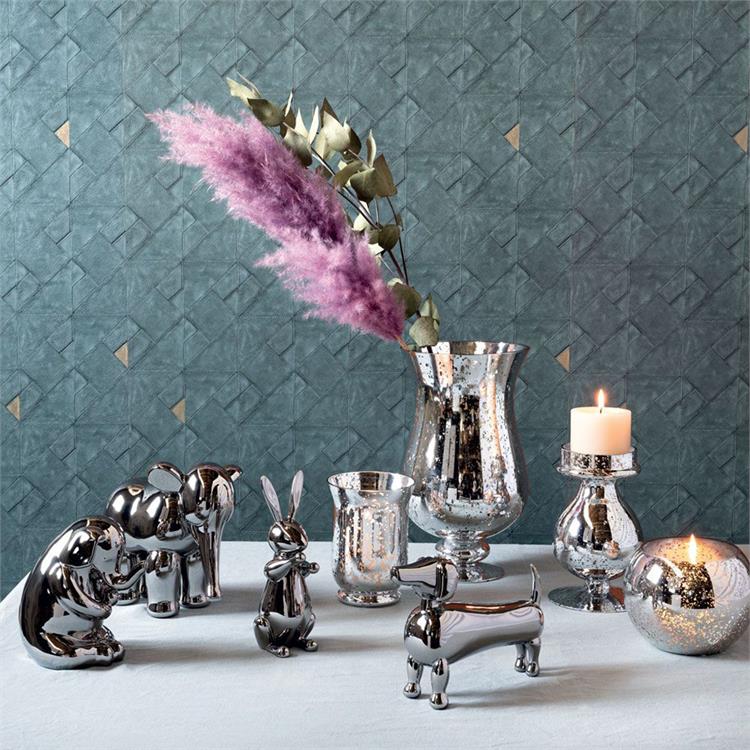Elefantino in ceramica cromata dalle forme arrotondate.