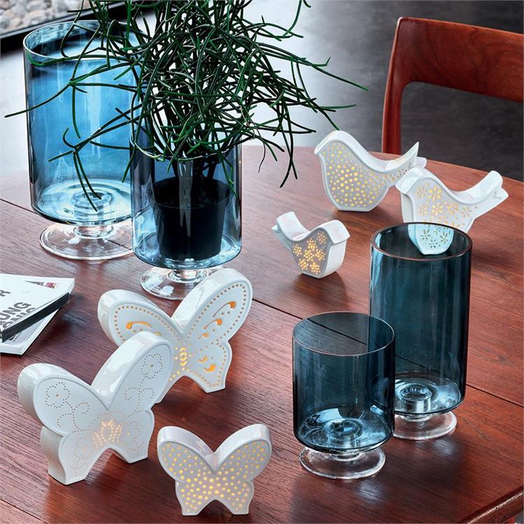 La collezione Dodo di Andrea Fontebasso è composta da piccole statuine con led a forma di farfalla ed uccellino dalle decorazioni assortite.
