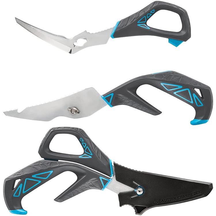 Che tu sia in barca o sulla riva, hai bisogno di uno strumento con cui possa far tutto. Queste forbici sono utilizzabili come un'unità coesa o come 5 utensili con funzioni specifiche per poter pulire il pesce.