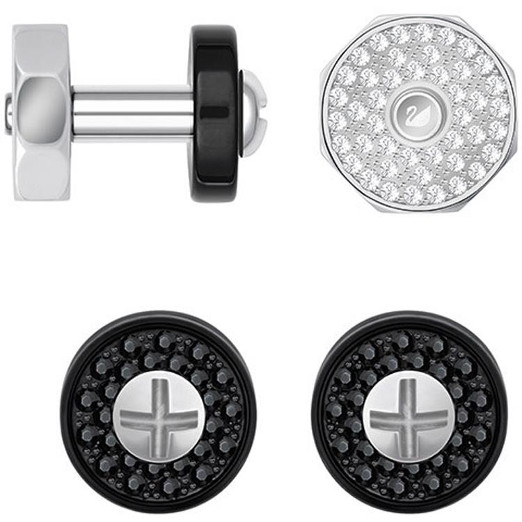 Coppia di gemelli indossabili da entrambi i lati per una doppia possibilità di abbinamento: da un lato lo strepitoso pavè di cristallo bianco e dall'altro il pavè di cristallo nero.
