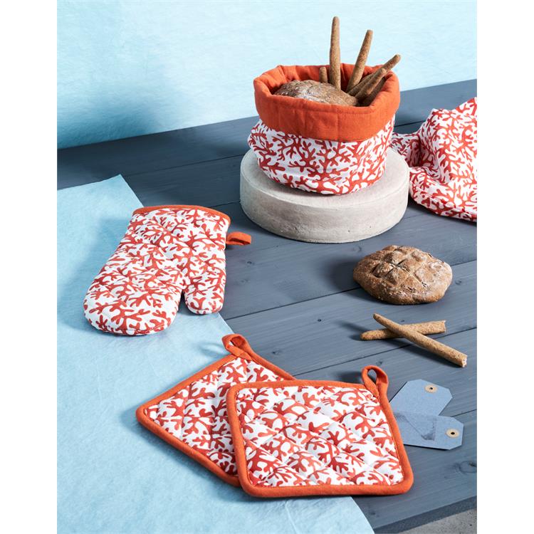 Il guato forno Reef fa parte di una linea di prodotti Andrea Fontebasso a tema marino sulle tonalità rosso del corallo e del turchese. Coralli rossi su sfondo bianco prendono vita su questo guanto forno, composto da fibre di cotone riciclato e poliestere, che ti trasporteranno immediatamente in un'atmosfera marina colorata e vivace nel tuo quotidiano.