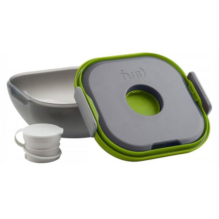 Lo scomparto per il condimento, anch'esso è removibile e dotato di un coperchio morbido di sicurezza. In robusta plastica ecologica di qualità con chiusure flip-top