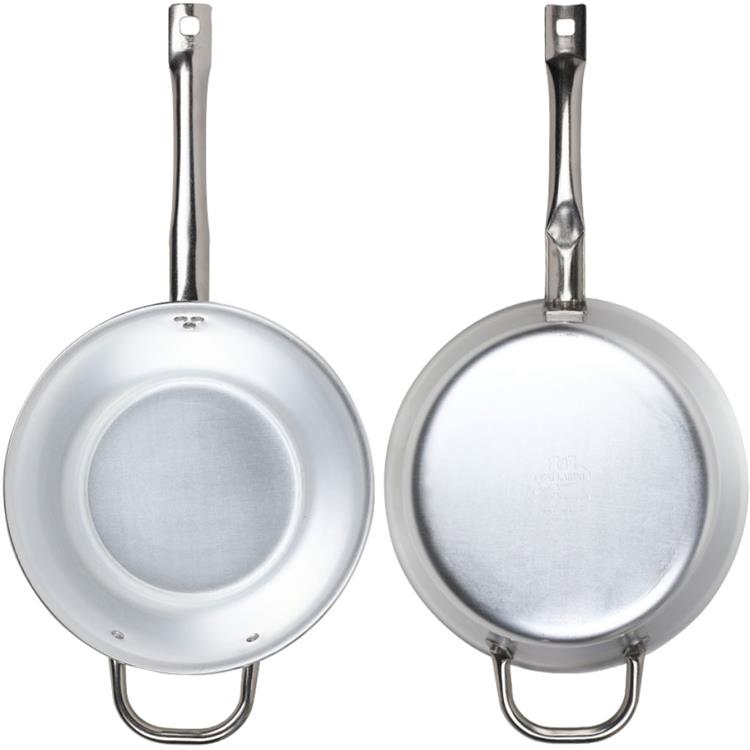 Il paiolo professionale Ballarini ha una parete ad alto spessore, compreso tra 2.5 e 5 mm con finitura esterna ed interna in alluminio lavato decapato neutralizzato.
