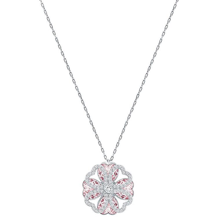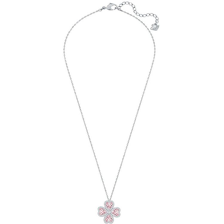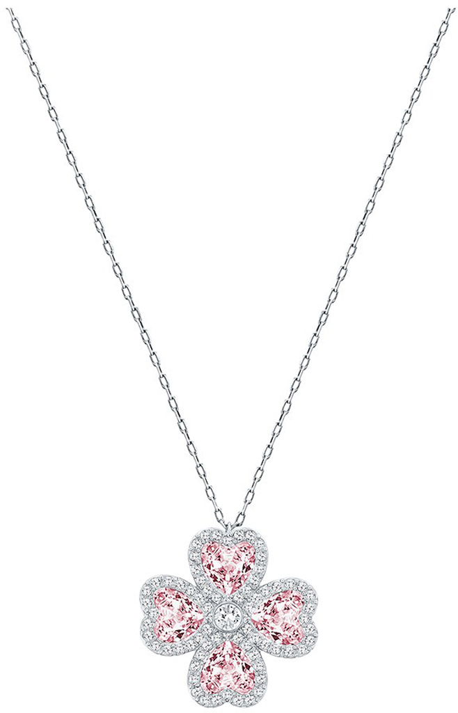 Il suo delicato stile floreale è costituito da quattro petali a forma di cuore in cristallo viola chiaro delimitati da un pavè di Clear Crystal, agganciato alla sua catena rodiata di lunghezza cm 40.