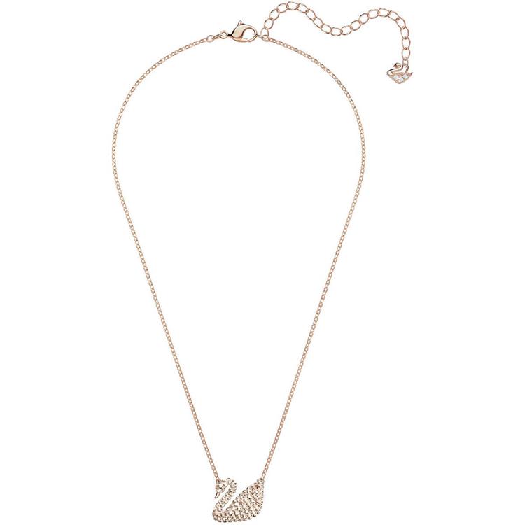 Questo pendente all'ultima moda, dall'inconfondibile design Swarovski, presenta una nuova interpretazione dell'iconico motivo del cigno. Il metallo placcato oro rosa è completato alla perfezione da cristalli dorati, incastonati con l'esclusiva tecnica del Pointiage per uno scintillio ancora più intenso. Un gioiello romantico con un tocco elegante e contemporaneo.