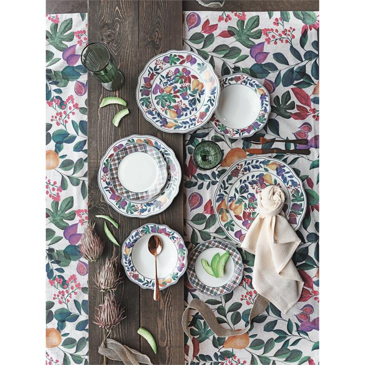 Frutti di stagioni e tonalità scure del blu e viola decorano questo piatto rotondo piano come piatto da portata da abbinare al servizio di piatti per un set completo e coordinato. Della stessa linea sono disponibili tovaglie di diverse misure ed accessori da cucina. Vesti la tua casa in autunno con gusto e raffinatezza.