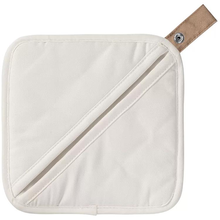 La presina garantisce un'ottima protezione dal calore ed è impreziosita da un occhiello apribile con un bottone automatico in metallo per poterla appendere senza l'uso di ganci.