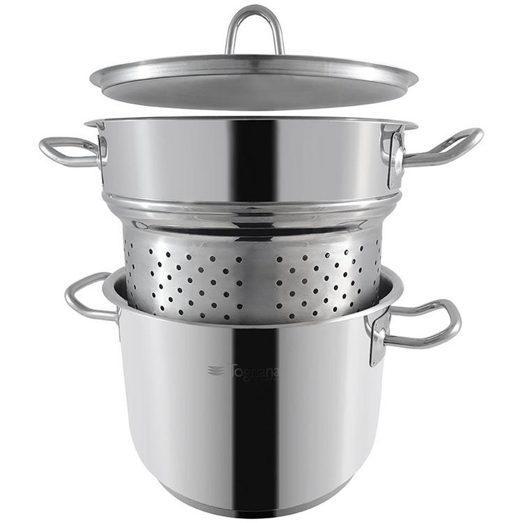 Set per la cottura della pasta della linea Vanitosa, completamente in acciaio bianco.