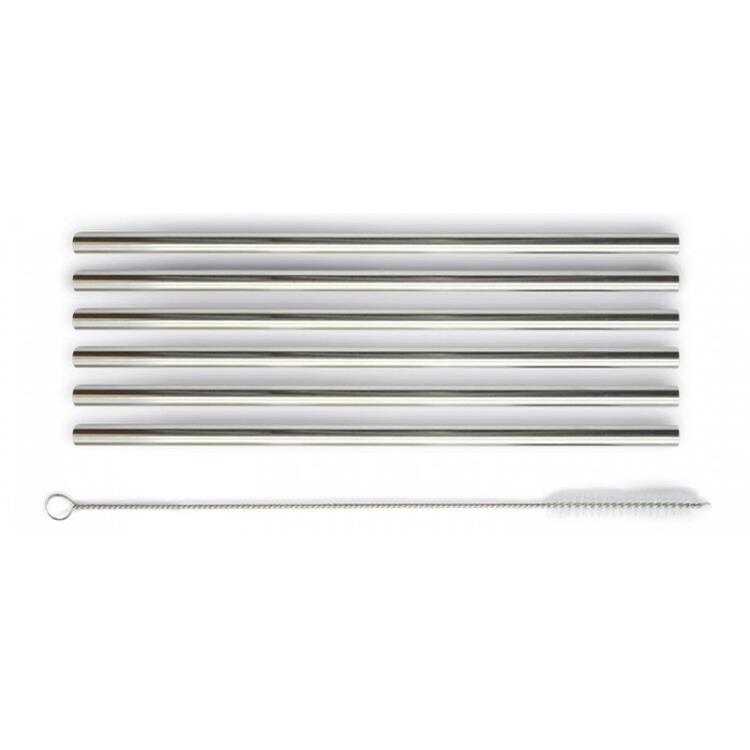 Confezione da 6 cannucce realizzate in acciaio inox, 100% riciclabile, riutilizzabili e resistenti.