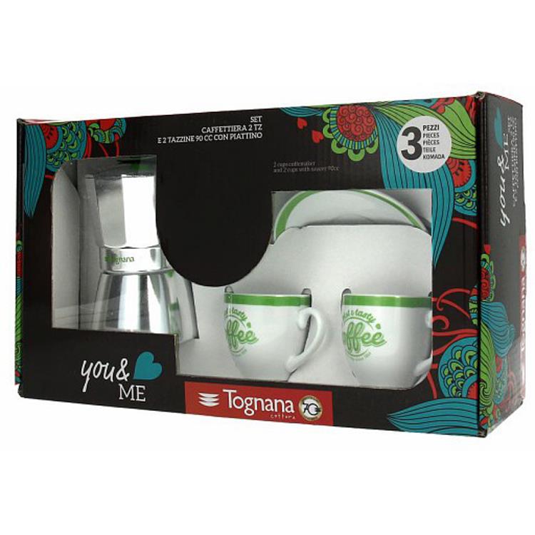 Set Moka Tazze 2 Con 2 Tazzine E Piattini Verde