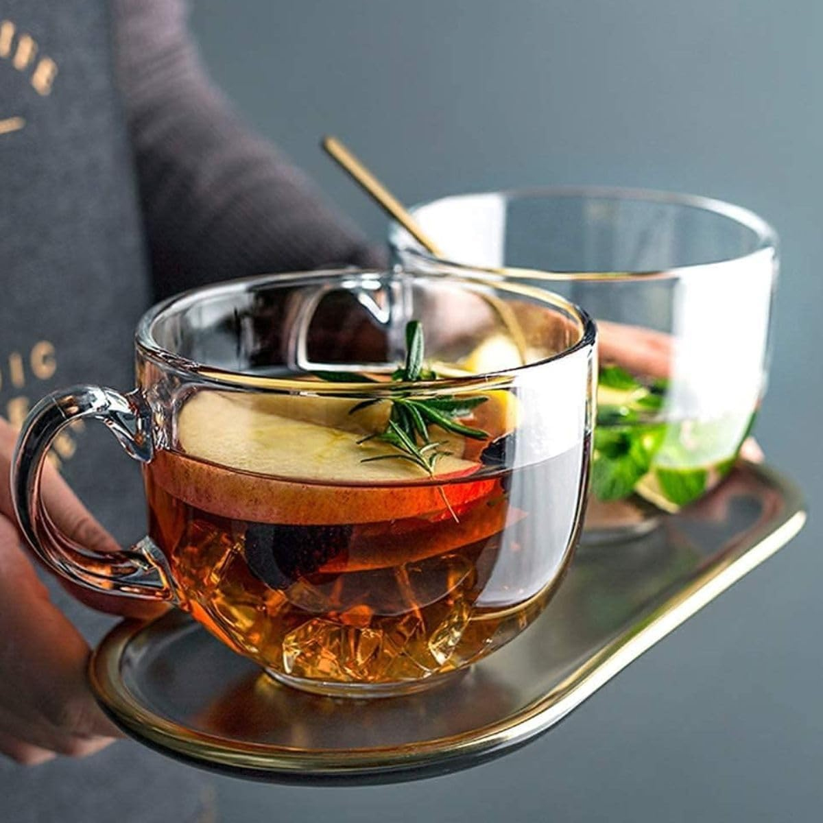 Tazza in robusto vetro per colazioni o spuntini importanti.