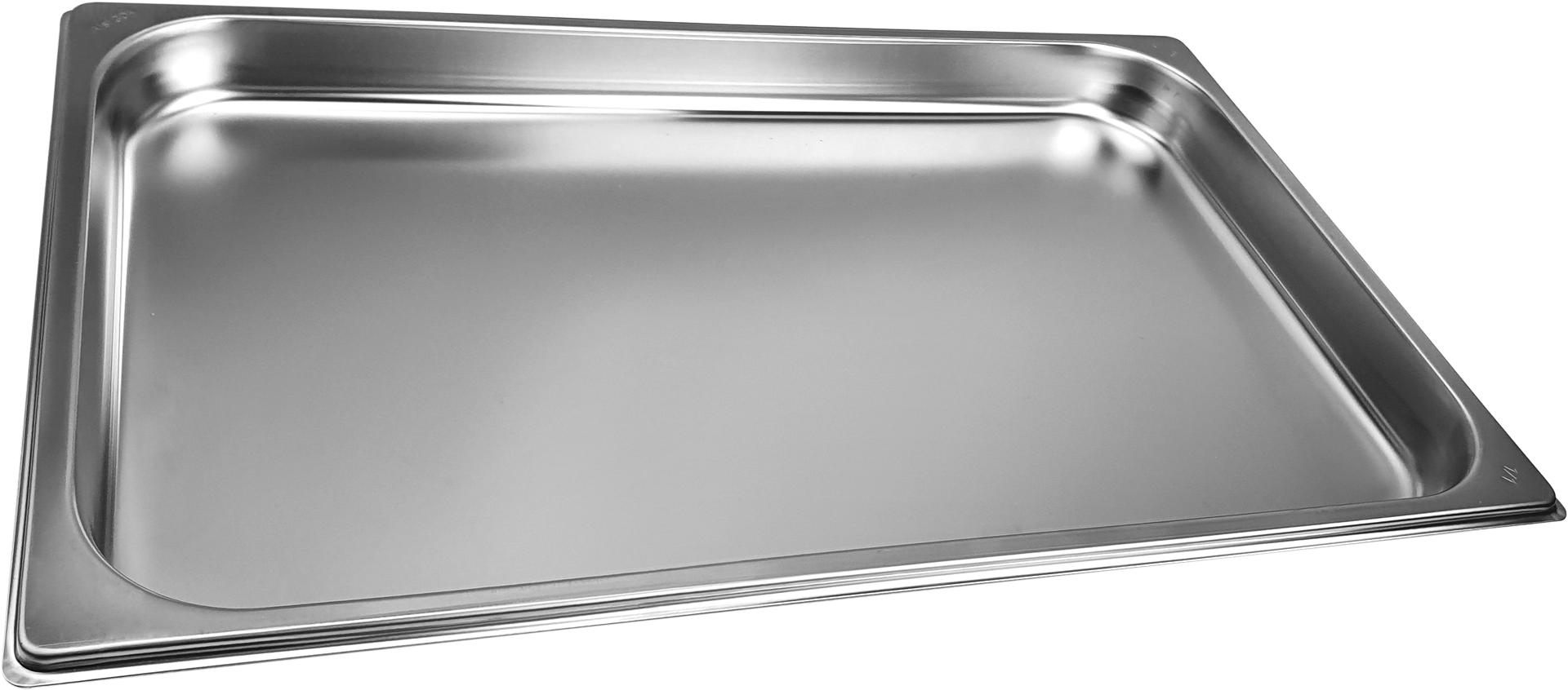 Linea completa di contenitori gastronorm per la moderna cottura in forno. Teglia GN 1/1 acciaio inox Aisi 304 detto anche acciaio inox 18/10 con bordo sagomato SERIE 8000.