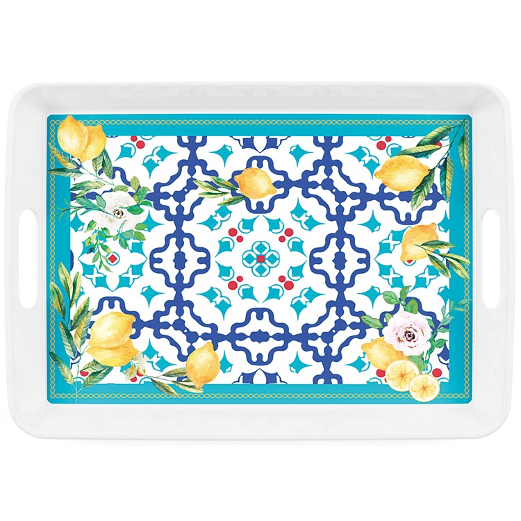 Vassoio Rettangolare Con Manici Flower E Lemon